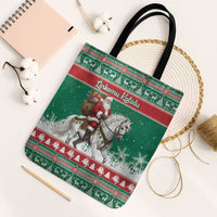 Lithuania Christmas Tote Bag Santa Riding White Horse Linksmu Kaledu