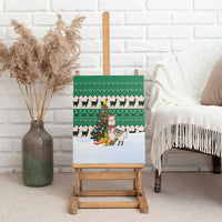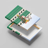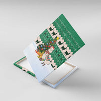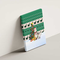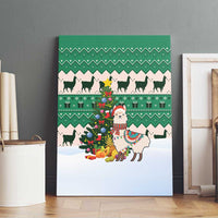 Llama Decorating Tree in Santa Hat Canvas Wall Art with Green Gift Pattern Design