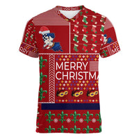 Louisiana Merry Christmas Women V-Neck T-Shirt Xmas Holiday Patterns TS04