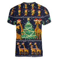 Love Giraffe Christmas Women V-Neck T-Shirt Xmas Holiday Patterns