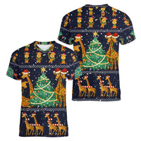 Love Giraffe Christmas Women V-Neck T-Shirt Xmas Holiday Patterns TS04