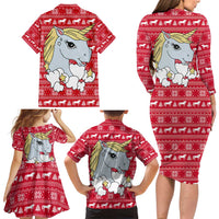 Lovely Unicorn Christmas Family Matching Long Sleeve Bodycon Dress and Hawaiian Shirt Xmas Holiday Patterns