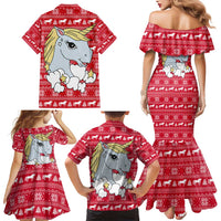 Lovely Unicorn Christmas Family Matching Mermaid Dress and Hawaiian Shirt Xmas Holiday Patterns
