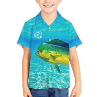 Mahi Mahi Fishing Customize Name Family Matching Long Sleeve Bodycon Dress and Hawaiian Shirt Underwater Blue Background in Tropical Ocean Scene TS04