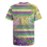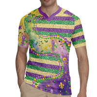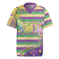 Mardi Gras Fleur De Lis Rugby Jersey With Beads Glitter Pattern