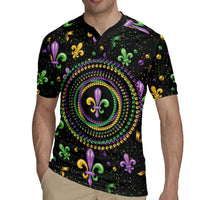 Mardi Gras Fleur De Lis Rugby Jersey With Round Carnival Beads LT9