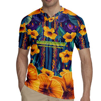Martinique Map and Hibiscus Rugby Jersey Island Silhouette with Tribal Stripe Accents