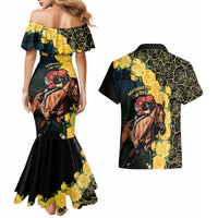 Melbourne Horse Racing Couples Matching Mermaid Dress and Hawaiian Shirt Yellow Roses - Ready Set Gallop!