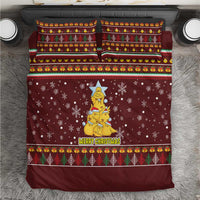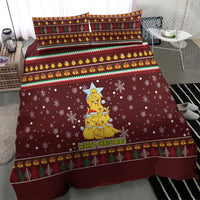 Merry Chickmas Christmas Bedding Set with Yellow Chickens Tree Design and Snowflake Pattern
