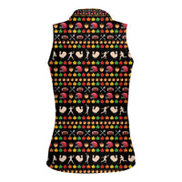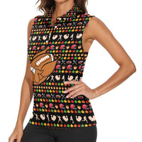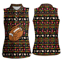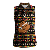 Merry Christmas Turkey Football Women Sleeveless Polo Shirt Fall Leaves Pattern for Game Day Fans TS04