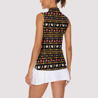 Merry Christmas Turkey Football Women Sleeveless Polo Shirt Fall Leaves Pattern for Game Day Fans