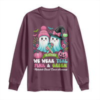 Metastatic Breast Cancer Awareness Ghost Long Sleeve Shirt Halloween Green Teal Pink Ribbon TS10