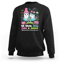 Metastatic Breast Cancer Awareness Ghost Sweatshirt Halloween Green Teal Pink Ribbon TS10