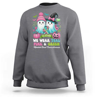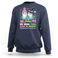 Metastatic Breast Cancer Awareness Ghost Sweatshirt Halloween Green Teal Pink Ribbon