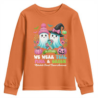 Metastatic Breast Cancer Awareness Ghost Youth Sweatshirt Halloween Green Teal Pink Ribbon