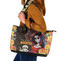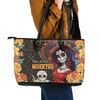 Mexico Day Of The Dead Leather Tote Bag La Catrina Mix Cempasuchil Aztec Pattern LT15