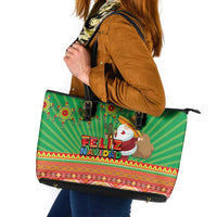 Mexico Leather Tote Bag Feliz Navidad Aztec Geometric Pattern