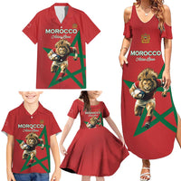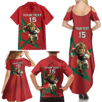 Morocco Rugby Custom Family Matching Summer Maxi Dress and Hawaiian Shirt Lion Mascot Green Star