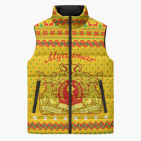 Get your Myanmar Christmas Sleeveless Puffer Jacket with Yellow-Red-Green Theme, National Emblem, and Star Motif by Wonder Print Shop today and experience warmth, style, and versatility in one perfect piece.