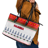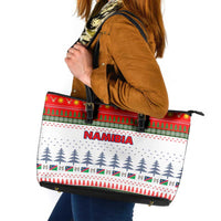 Namibia Christmas Leather Tote Bag with Red-Green Theme, Coat of Arms, and National Flag Motif TS04