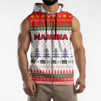 Order your Namibia Christmas Sleeveless Zip Hoodie with Red-Green Theme, Coat of Arms, and National Flag Motif by Wonder Print Shop today and discover the perfect mix of movement, comfort, and street-ready style.