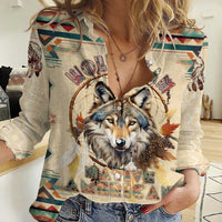 Native American Wolf Dreamcatcher Women Casual Shirt Vintage Style