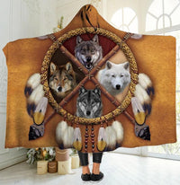 Native American Wolves Dreamcatcher Hooded Blanket LT10