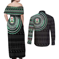 Nigeria Couples Matching Off Shoulder Maxi Dress and Long Sleeve Button Shirt African Tribal Pattern