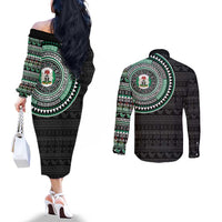 Nigeria Couples Matching Off The Shoulder Long Sleeve Dress and Long Sleeve Button Shirt African Tribal Pattern