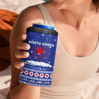 North Korea Christmas 4 in 1 Can Cooler Tumbler with Blue Pattern, Red Star, and Snowy Mountain Motif