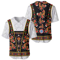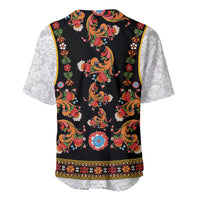 Norwegian Female Bunad Baseball Jersey with Rosemaling Folk Art Black Color