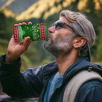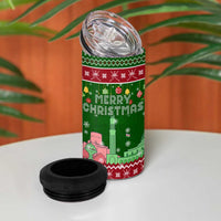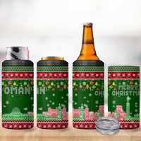 Oman Christmas 4 in 1 Can Cooler Tumbler with Green-Red Pattern, Mosque and Fort Landmarks, and Festive Ornament Motif