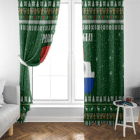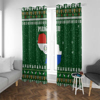 Paraguay Christmas Window Curtain with Green Festive Pattern, Map and Flag Motif, and Santa Illustration
