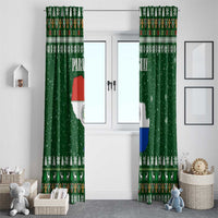 Paraguay Christmas Window Curtain with Green Festive Pattern, Map and Flag Motif, and Santa Illustration TS04