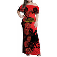 Personalised Albania Eagle Family Matching Off Shoulder Maxi Dress and Hawaiian Shirt Red Poppy Flowers LT01