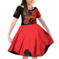 Personalised Albania Eagle Family Matching Off Shoulder Short Dress and Hawaiian Shirt Red Poppy Flowers