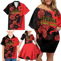 Personalised Albania Eagle Family Matching Off Shoulder Short Dress and Hawaiian Shirt Red Poppy Flowers LT01