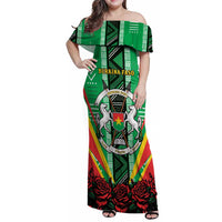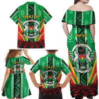 Personalised Burkina Faso Family Matching Off Shoulder Maxi Dress and Hawaiian Shirt Coat Of Arms Bogolan Pattern