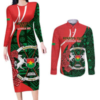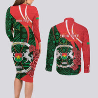 Personalised Burkina Faso Republic Day Couples Matching Long Sleeve Bodycon Dress and Long Sleeve Button Shirt Happy 66th Anniversary - Bogolan Pattern LT14