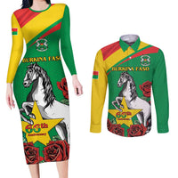 Personalised Burkina Faso Republic Day Couples Matching Long Sleeve Bodycon Dress and Long Sleeve Button Shirt Happy 66th Anniversary with White Stallion LT15