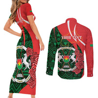 Personalised Burkina Faso Republic Day Couples Matching Short Sleeve Bodycon Dress and Long Sleeve Button Shirt Happy 66th Anniversary - Bogolan Pattern LT14