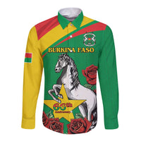 Personalised Burkina Faso Republic Day Long Sleeve Button Shirt Happy 66th Anniversary with White Stallion