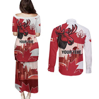Personalised Canada Day 1867 Couples Matching Puletasi and Long Sleeve Button Shirt Moose With Maple Leaves