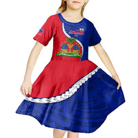 Personalised Haiti Independence Day Kid Short Sleeve Dress Ayiti National Emblem With Polynesian Pattern