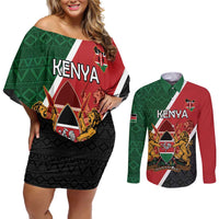 Personalised Kenya Couples Matching Off Shoulder Short Dress and Long Sleeve Button Shirt Coat Of Arms Mix Flag Style LT15