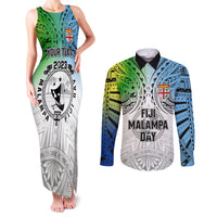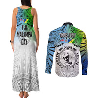 Personalised Malampa Fiji Day Couples Matching Tank Maxi Dress and Long Sleeve Button Shirts Gradient Style