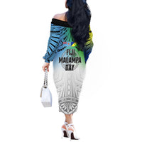 Personalised Malampa Fiji Day Off The Shoulder Long Sleeve Dress Gradient Style