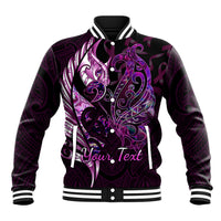 Personalised New Zealand Breast Cancer Baseball Jacket Fight Like A Girl Pink Manaia Fern With Paua Shell