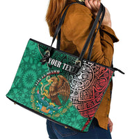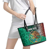 Personalised Viva La Mexico Leather Tote Bag Coat Of Arms Aztec Mix Otomi Patterns LT15