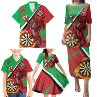 Personalised Wales Darts Family Matching Puletasi and Hawaiian Shirt Welsh Dragon - Grunge Style